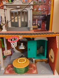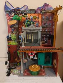 Quartier generale tartarughe ninja comprende teleferica ascensore palla di melma rotolante botola e canestro piu personaggi tartarughe ninja Rocksteady con moto tutto praticamente nuovo