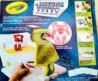 Con questo gioco Crayola "Il Disegna Tutto" si possono riprodurre quasi tutte le figure 3D e 2D e creare disegni guardando attraverso la lente. Sarà possibile tracciare l'immagine riflessa proiettata sul foglio. Contiene la sola unità disegnatutto pieghevole. Ad euro 8,00.