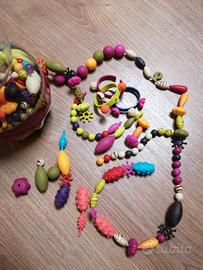 500 perle in plastica dalle forme diverse e dai colori moderni che grazie ad una tecnica ad incastro consentono di realizzare fantastiche collane, bracciali e anelli. Potrebbero mancare dei pezzi,