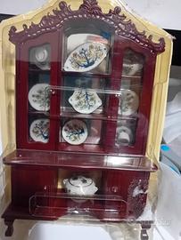 Mobile molto bello in legno, completo di stoviglie in ceramica. Ante apribili, altezza cm 19. Mai utilizzato
