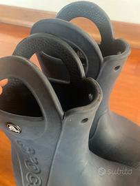 Vendo Crocs stivali taglia c13 bambino blu corrispondenti al numero 30-31 in ottimo stato. Stivale unico e iconico, resistente e comodo facile da indossare, non si usura e il materiale è di ottima qualita. Segnalo piccolo taglio sulla maniglia stivale dx come da foto.