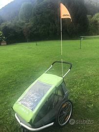 Vendo rimorchio per bambini usato ma in buone condizioni! Completo di accessori: sdraietta per neonati, riduzione per bambini più grandini, asta con bandierina, la rotellina piccola s’incanta. Anno di acquisto 2016. Da vedere, posso consegnare in zona.