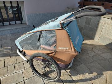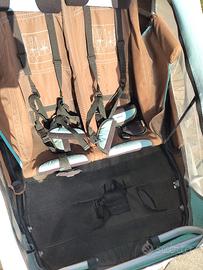 Carrello bici per due bambini. Altezza massima fino a 120cm e peso totale trasportabile 45kg.