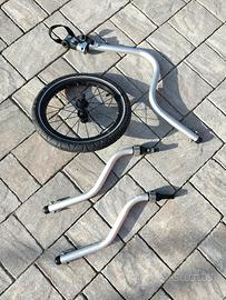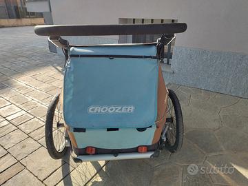 Vendo per inutilizzo. Carrello bici per due bambini. Altezza massima fino a 120cm e peso totale trasportabile 45kg. Versione plus, con ammortizzatore come da foto. Sull'impugnatura rimuovibile sono presenti due lampeggianti ricaricabili tramite usb. Completo sia di ruota da passeggio, che ruota per trekking/corsa, che gancio per bici. Vendo a meno perché ci sono alcuni danni sul pavimento e l'apertura laterale.