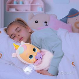 CRY BABIES Luna & Poppy Bambola Interattiva Amici Della Buonanotte Luna e Poppy Vanno a Dormire, Luci Magiche, Suoni e Ninne Nanne Per Bambini Bambini a partire da 3 anni NUOVO IMBALLATA LISTINO 40€ Trasformazione magica: girate la morbida coperta e scoprite chi si nasconde dietro di essa. Luna e Poppy vi accompagneranno tutto il giorno e tutta la notte. Luci e ninne nanne: stringendo la mano, le ali si illuminano e riproducono diversi suoni del bambino e 5 dolci ninne nanne. Corpo morbido: Luna e Poppy hanno un corpo in morbido peluche e un muso schiacciato. Sono perfetti per essere coccolati dai più piccoli e per dormire la notte, facili da portare in giro! 4 ninne nanne: include 4 ninne nanne per farvi dormire tranquilli accompagnati dalle vostre migliori amiche Luna e Poppy.