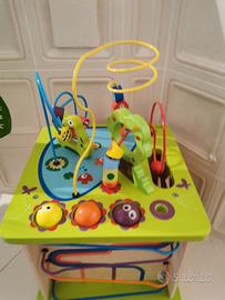 cubo multi-attività con cinque facce, pensato per giocare e scoprire, in grado di aiutare a sviluppare le abilità motorie, la logica e la perseveranza.