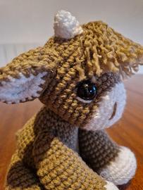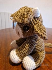 Adorabile cucciolo realizzato all'uncinetto, perfetto per decorare o come compagno di giochi. - Morbido filato marrone e bianco. - Dettagli con occhietti neri. - Design simpatico e accogliente.