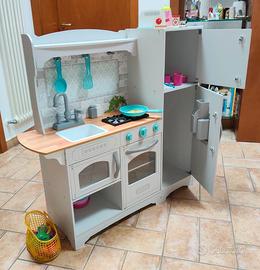 Cucina per bambini Kidkraft Contryside, spaziosa, solida, con distributore ghiaccio,con accessori inclusi (pentole,piatti,posate,tostapane lidl,frutta a strappo)