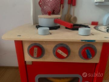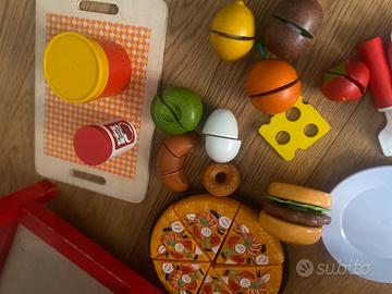 Cucina bambini multiaccessoriata pentola piatti tavolette posate e cibi da tagliare e cucinare