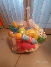 Cucina Giocattolo Chicco con 2 sacchetti pieni di accessori; cucchiai, tazzine, piatti, forchette, cibi in plastica ecc... tenuto benissimo. Consegna a mano.