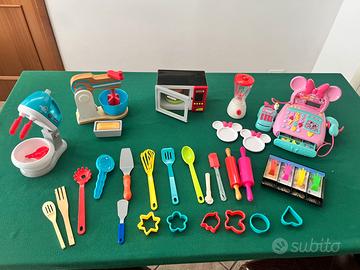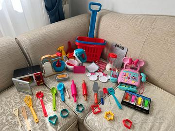 Cucina Smoby con tanti giochi e accessori misure 62P x 85l x 99H cm, tutto in ottimo stato. Forno microonde con suoni Mini robot da cucina e Frullatore che ruotano con luci e suoni Mini robot da cucina in legno Cassa di Minnie e calcolatrice funzionante Set Sushi e vari tipi di frutta e dolci Carrello della spesa Pentole, piattini, bicchieri, posate e utensili di vari tipi