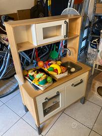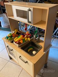 Cucina gioco, betulla. Sono compresi set di giocattoli (frutta, dolci ecc).