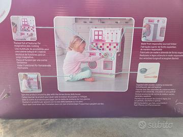 Con questa bellissima casetta delle bambole puoi giocare anche con la cucina incorporata. Splendido set 2 in 1 che prevede una casetta delle bambole da un lato e una cucina dall'altro. Il divertimento è assicurato.