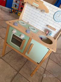 Cucina, bimbo, bimba, qualche scritta, ma per il resto, ottima insieme a una busta piena di giochi per la cucina, tra cui pentole, piatti, posate e cibo finto