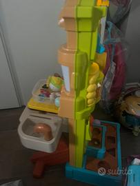 Cucina per bambini da 18 ai 36 mesi, fa suoni e luvi, parla solo in inglese , perfettamente funzionantr, da un lato cucina e dallmaltro lato garden. Ottime condizioni