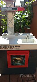 cucina giocattolo bambini, le etichette sono scolorite, ma si può tranquillamente personalizzare. La parte in plastica ha i gancetti appendi stoviglie alcuni rotti(come da foto), lavandino, scaffali laterali, manopole girabili che fanno lo scatto mentre girano e forno apribile. misure h90cmx47cm larghezza. Ritiro a mano Bologna/Ferrara