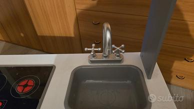 Cucina giocattolo, ha la macchina del ghiaccio che butta fuori i cubetti di ghiaccio(cubetti di legno), il microonde riproduce luci e suoni, anche fornelli e la cappa. In ottimo stato, comprata su Amazon dicembre 2022. Usata pochissimo. Ritiro solo di persona, perchè pesante. Per altre info non esitate a contattarmi.