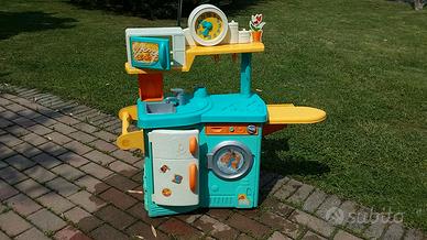 Cucina Fisher Price, usata, come da foto in ottime condizioni e comprensiva di pezzi stoviglie piattini, ecc. Misure in cm 88 x 30 x 65 altezza piano di lavoro 48 cm. Spedisco oppure ritiro a mano o consegno in zone limitrofe.