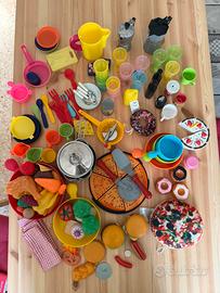 Cucina giocattolo Ikea in legno più accessori (vedi ultima foto). Ci sono diversi difetti estetici ma è integra e funzionante. Comprende tutti gli accessori giocattolo.