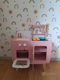 Vendo cucina per bambini Mamabrum retrò in legno, colore rosa, completa di: