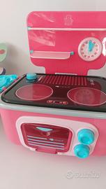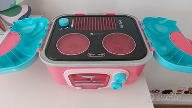 Cucina per bambini, piccola carina, non ingombrante, con le batterie si illuminano i fornelli . Contiene spazio per riporre pentoline e piattini. Mia figlia la portava anche in vacanza! All'interno anche finto la andino con rubinetto.