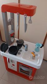 Solo consegna a mano. Ottime condizioni. Sportelli apribili, il fornello emette suono acqua che bolle quando si appoggia sopra la pentolina. La cucina per bambini è stabile e sicura per le mani delicate del bambino. I suoi bordi sono arrotondati e il materiale plastico è piacevole e vellutato al tatto. L'angolo cottura è alto 97 cm e le sue dimensioni sono 53*34*97 cm.