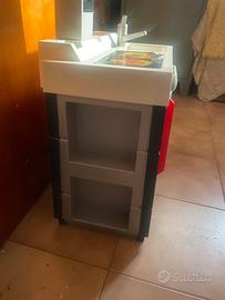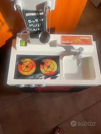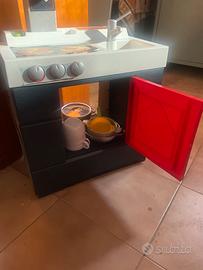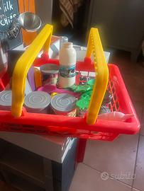 Vendo piccola cucina giocattolo usata, ma in buone condizioni con cestino spesa giocattolo e alcune pentoline