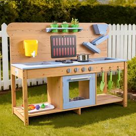 Aree gioco versatili: la nostra cucina da esterno per bambini include un'area di cottura, giochi con acqua e sabbia e accessori per la coltivazione. Include 3 vasi, 2 spatole di legno, 3 contenitori per la coltivazione, 8 cibi finti e 1 grembiule