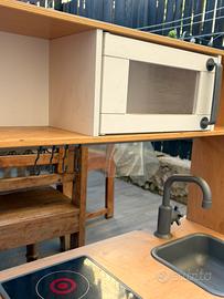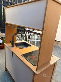 In ottime condizioni. No perdi tempo!! Dettagli: - dotata di luci sul piano cottura che si accendono e si spengono. - in dotazione gancetti porta mestoli in plastica. Dimensioni: 72x40x109 cm Peso: 17,93 kg Materiale: legno