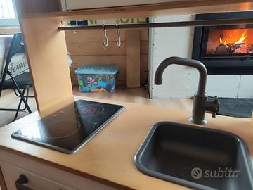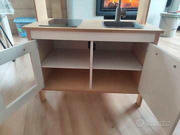 Vendo bellissima Cucina Originale IKEA (modello DUKTIG) in legno naturale con ante bianche, piano cottura, lavabo e forno.