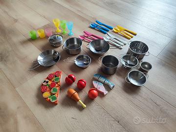 Includo inoltre i vari set di accessori IKEA che vedete nella foto: pentole, mestoli, posate, bicchieri, cucchiai e qualche alimento divertente in legno. Tutto il necessario per iniziare a giocare con un gioco di qualità, resistente e creativo.