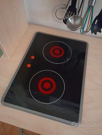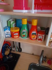 Cucina in legno ikea con piano cottura elettronico funzionante in ottimo stato. Sono compresi gli utensili, stoviglie,pentole in alluminio sempre ikea, bicchieri, cibo in legno e feltro e tantissimi accessori per divertirsi giocando.