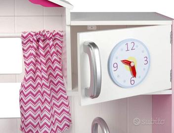 Leomark Cucina Rosa in legno, giocattolo per bambini, accessori per cucina, gioco in legno, fornello divertimento PINK PLAY dimensioni: 82x30x101(A) cm