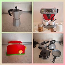 Cucina giocattolo in legno acquistata da sito tedesco, quasi in perfette condizioni. Con finta cappa, fuochi che si accendono, rubinetto, forno con pomelli che si muovono e microonde. In aggiunta alla cucina ci sono tantissimi accessori tra cui utensili, pentole, macchina per toast e macchina per il caffè