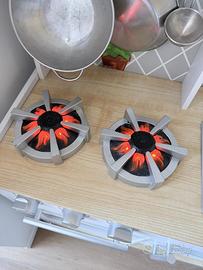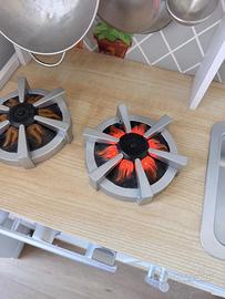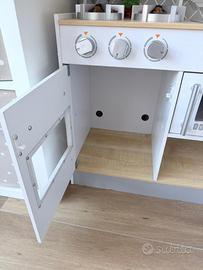 Cucina Moderna Let's Cook in Legno La cucina Let's Cook in legno di KidKraft offre eccellenti funzioni interattive. Misure 58.42 x 32.0 x 89.41 cm. Costo del nuovo 220,00 Le manopole funzionanti, gli sportelli degli elettrodomestici apribili e chiudibili, il rubinetto estraibile e i fornelli realistici con suoni e luci offriranno ore di divertimento agli aspiranti chef. Gli scaffali e i ganci offrono spazio per cibo giocattolo, posate o qualsiasi altro articolo utile ai piccoli chef per preparare pasti immaginari per le proprie famiglie. È presente un telefono giocattolo con vivavoce agganciato alla parte laterale dell'armadio. Caratteristiche principali: - Fornelli con luci e suoni - Sportelli del forno termico e a microonde apribili e chiudibili - Pratico armadietto posto sotto il forno a microonde - Manopole del forno funzionanti - Lavello rimovibile per una pulizia semplice - Realizzazione in legno elegante e robusto