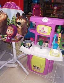 Bellissima cucina giocattolo raffigurante la famosa Masha col suo amico Orso.. Completa di posate, padella, porta frutta, frutta e tazzine, brocchetta e bottiglietta di latte.. In più una bellissima tracollina con l'immagine di Mash8