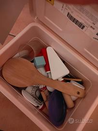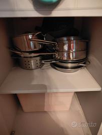 Vendo cucina per bambini utilizzata poco, completa di carrellino per la spesa, due casse, macchinetta del caffè, accessori vari: alimenti, piattini e posate, set barbecue, set verdure con velcro da tagliare, pizza, pentolini. Esclusi solo i contenitori