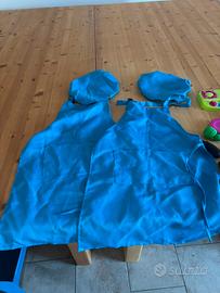 2 set di frutta e verdura in stoffa e plastica e doppio set di grembiuli e cappelli da chef.