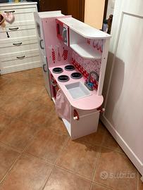 Cucina per bambini, molto bella e ben fatta, in legno, vendo perche la mia non ci gioca più . Perfetta come quando acquistata. Dimensioni: larghezza 115cm Altezza 100cm Profondità 30cm