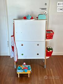 Vendo cucina per bambini della Lidl. Alla dotazione originale sono stati aggiunti molti set come visibile dalle foto. È stata usata con cura ed è in ottimo stato. La vendo per superamento età. Buona idea come regalo per ricorrenze tipo compleanno da 2 a 7 anni o nascita. La vendo già montata su Monopoli. Posso spedire smontandola. Non è complicato, ma mancano le istruzioni per rimontarla.