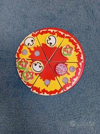 è una cucina con: oggetti per mangiare e cucinare (cioè per esempio pentole, forchette , ecc.), bibite e salse, poi ovviamente il cibo e infine una bella pizza!