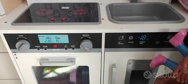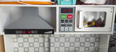 cucina per bambini elettronica in legno perfettamente funzionante con tutti gli accessori all'interno frutta posate piatti cassa ecc