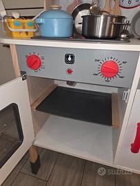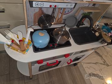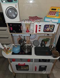 Vendo cucina giocattolo per bambini pari al nuovo , funzionante e super accessoriata. Carrello della spesa, utensili e pentolame in legno e metallo, alimenti da gioco, presine, grembiule da cuoco, cassa pagamenti. Aggiungo lavatrice a batterie con cestello realistico rotante.