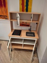 Cucinetta in legno IKEA, usata da mia figlia, ormai grande. La vendiamo con tutta una serie di accessori che abbiamo comprato nel tempo. La vendiamo già montata ma cmq con le istruzioni qualora si volesse smontarla. Ritiro sul posto.