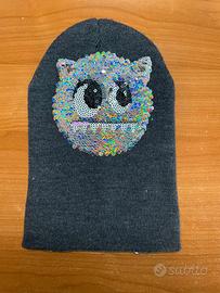 Cuffia cambia colore H&M taglia EUR 110-128 Il motivo del gatto diventa da rosa ad argento, passando una mano sulle paillettes che girandosi cambiano il colore + cuffia militare taglia M-L marca Primark. Come nuove.