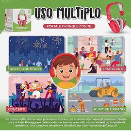 Cuffie antirumore per bambini da 3 a 12 anni . Rosse . Riduzione dei db per viaggi etc.