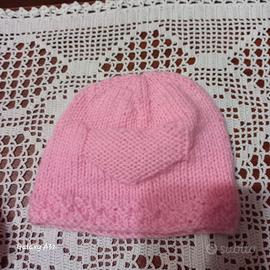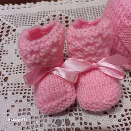 Cedo mini corredo rosa per neonato 0-6 mesi realizzato a mano in acrilico anallergico per neonati, tecnica mista uncinetto tunisino e ferri, nuovo mai usato, senza etichetta, prodotto italiano artigianale