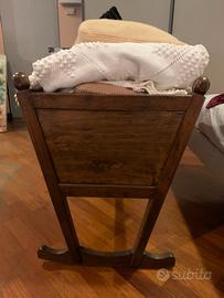 Culla a dondolo in legno massello, solida e stabile, realizzata con lavorazione tradizionale.