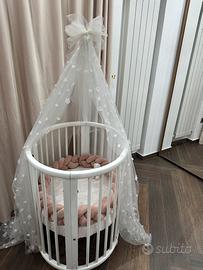 culla ovale trasformabile, un prodotto top quality che si converte in lettino grazie ad un semplice kit di trasformazione in dotazione, dunque, è possibile ampliare lo spazio nanna ottenendo un lettino spazioso e confortevole.
