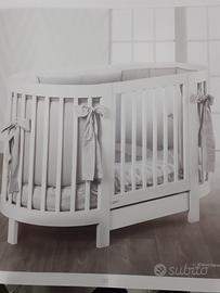 culla color tortora completa di materasso,paracolpi per le due dimensioni.comprende anche una copertina a piumino e braccio con velo
